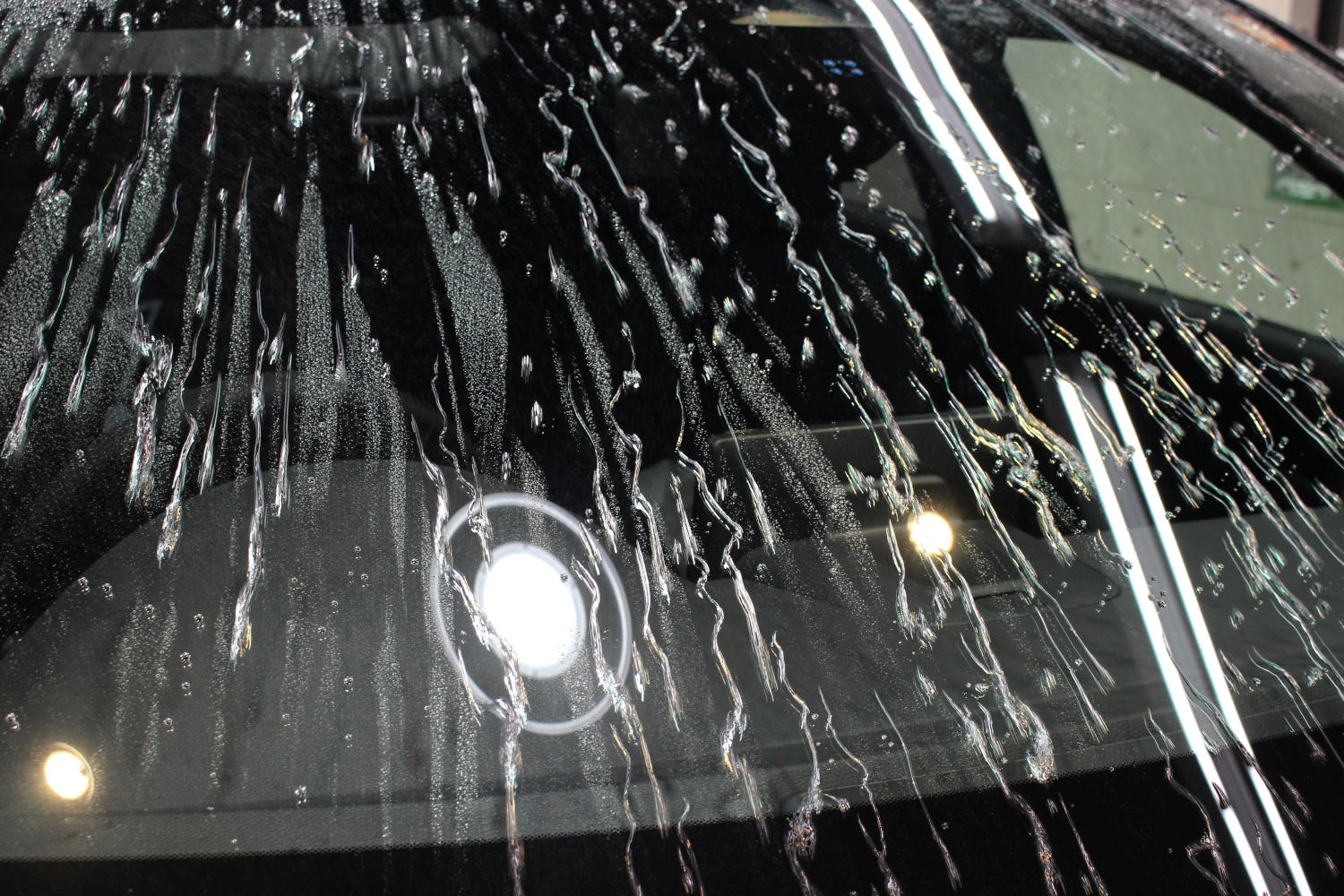 塗装面についた汚れの除去後はケミカル類を純水にて洗車、濯ぎを行いコーティング施工に移ります。