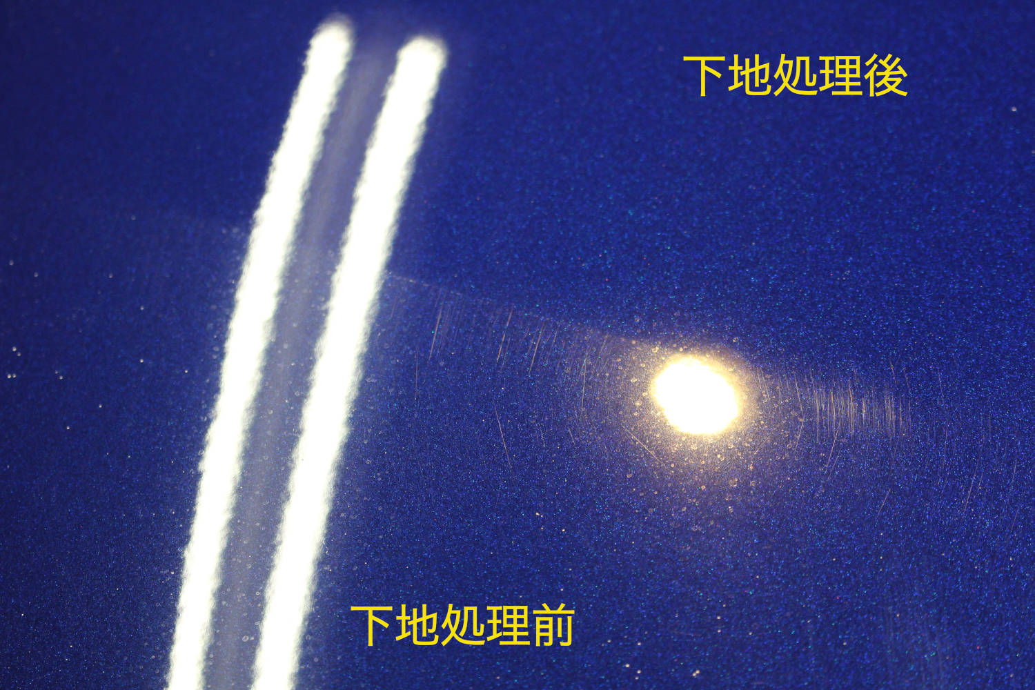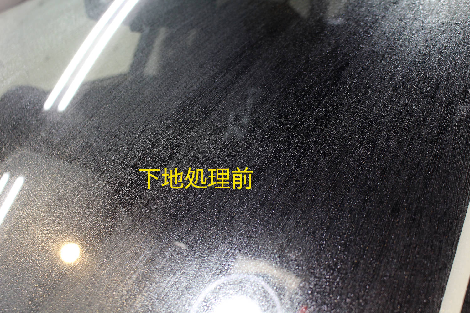 新車登録から3年半のお車となります。全体的に傷やシミに覆われた塗装面になっていました。今回は、最小限の磨きで最大限の艶を引き出す事ができる「Revolt adjust system(リボルトアジャストシステム)」にて磨きを行い可能な限り復元いたしました。当店の磨きは限りある塗装をむやみに磨くことはせず塗膜の厚さは確保し、負荷は極力抑えながら行いますので深い傷やクレーター化したシミは追い込まずにあえて目立ちにくいようぼかしたりを行う場合があります。