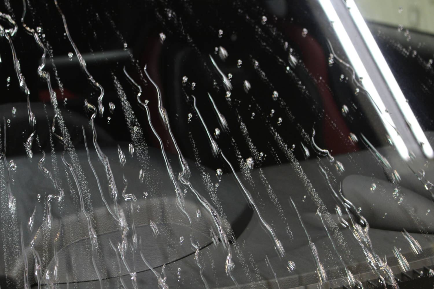 塗装面についた汚れの除去後はケミカル類を純水にて洗車、濯ぎを行いコーティング施工に移ります。