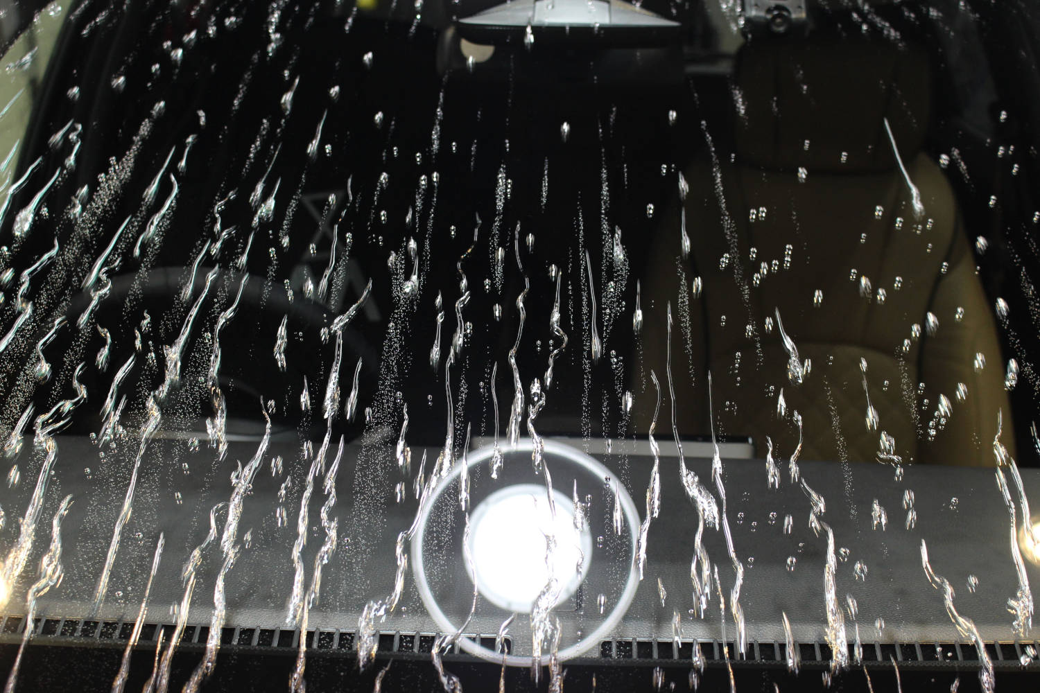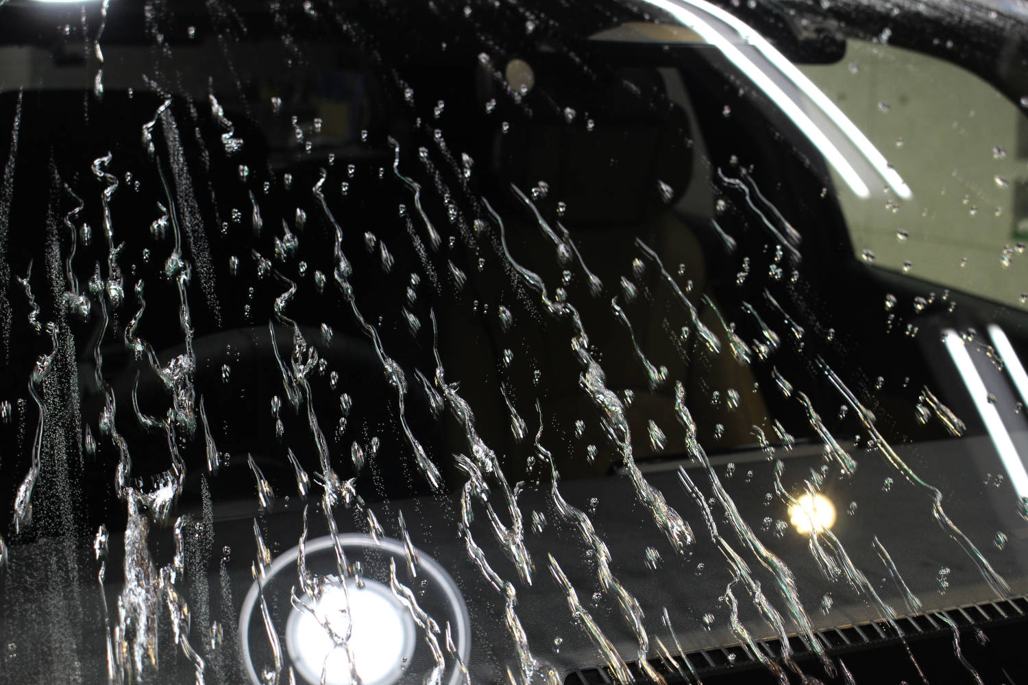窓ガラス全面の撥水加工を行いました。窓ガラス撥水加工は、お車の美観を保つだけでなく雨天時の視界確保にも役立つため皆様にお喜びいただくオプションメニューの一つとなります。新車ご納車から数日ほどのお車でしたが油膜が多く付着していました。当店の窓ガラス撥水加工は、新車経年車問わず施工前に油膜等の付着物の除去を行っているため耐久性に優れています。