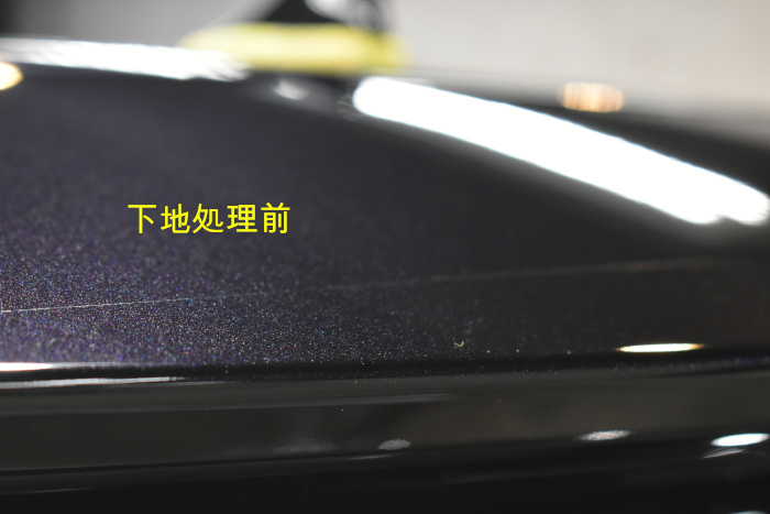 カーフィルムの施工が終わったらコーティング前の下地処理の作業に入ります。