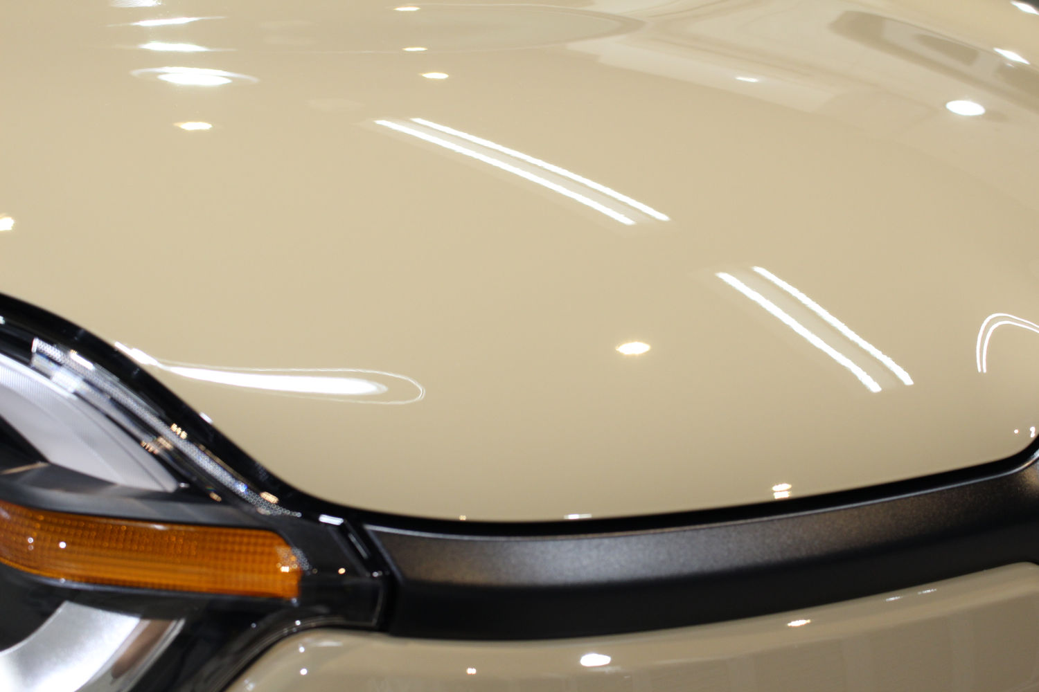 コーティングの施工範囲も外装の塗装面だけという業者さんも多いですが当店では全てのコースでドアヒンジ、バックドアの開閉部分、ボンネット裏側、給油口の内側、未塗装樹脂パーツなども標準施工範囲となっています。