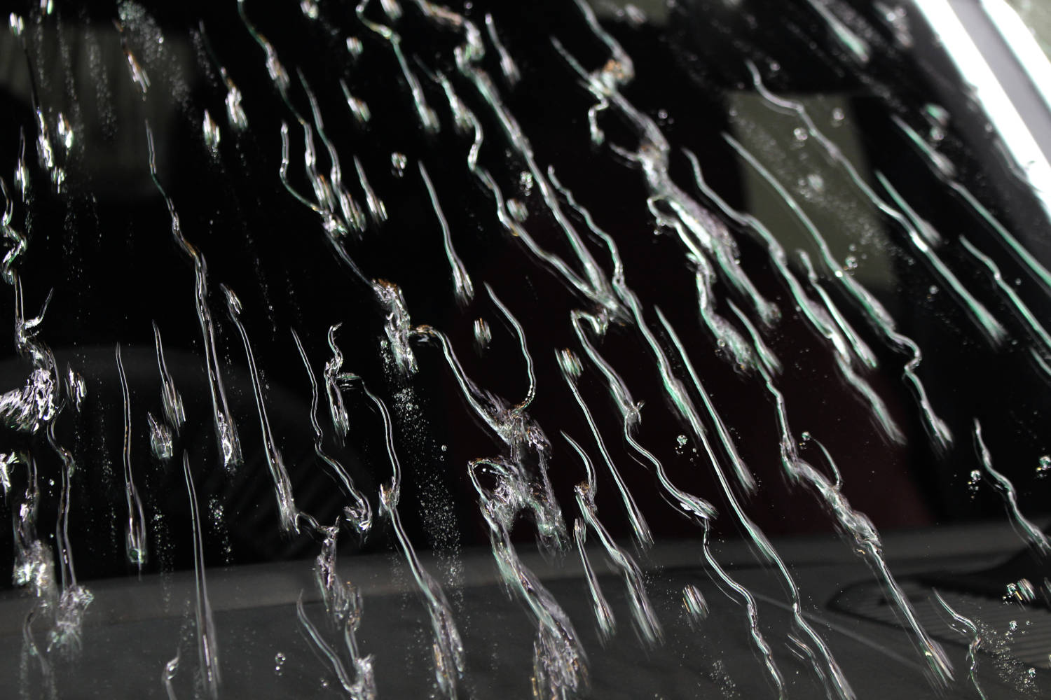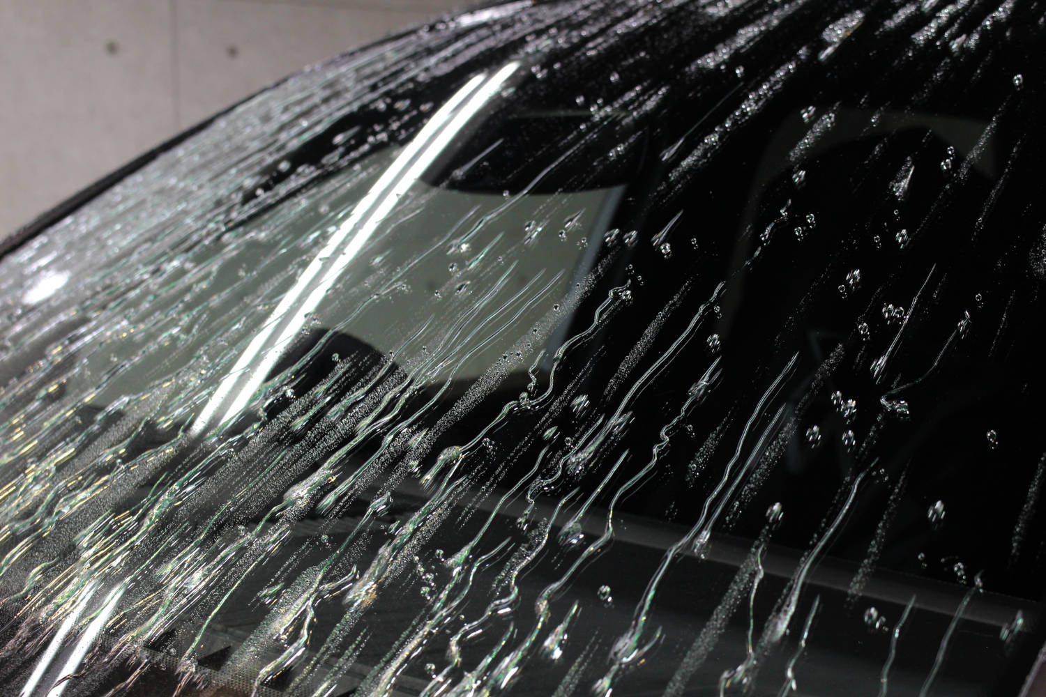 窓ガラス全面に加えパノラマルーフにも撥水加工を行いました。窓ガラス撥水加工は、お車の美観を保つだけでなく雨天時の視界確保にも役立つため皆様にお喜びいただくオプションメニューの一つとなります。重度のシミが見られましたが、可能な限り除去して撥水加工を行いました。