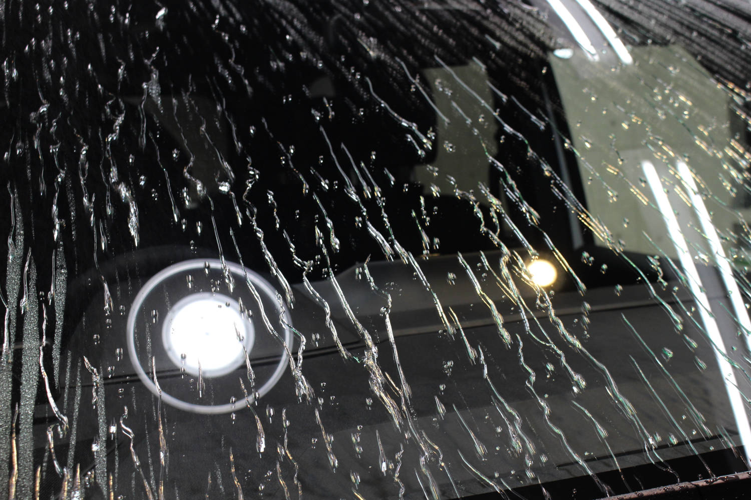 窓ガラス全面の撥水加工を行いました。窓ガラス撥水加工は、お車の美観を保つだけでなく雨天時の視界確保にも役立つため皆様にお喜びいただくオプションメニューの一つとなります。新車経年車問わず施工前に油膜等の付着物の除去を行っているため耐久性に優れています。